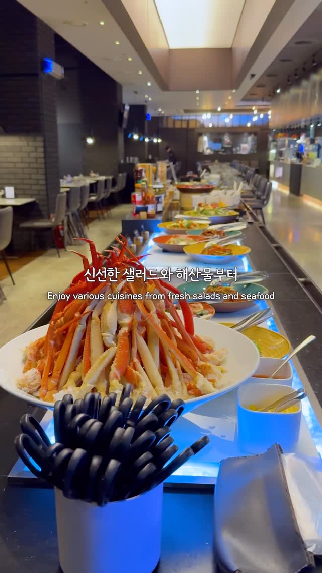 7개의 라이브 스테이션에 준비되는 full 뷔페와 한식, 중식, 일식 및 양식 요리를 경험할 수 있습니다.